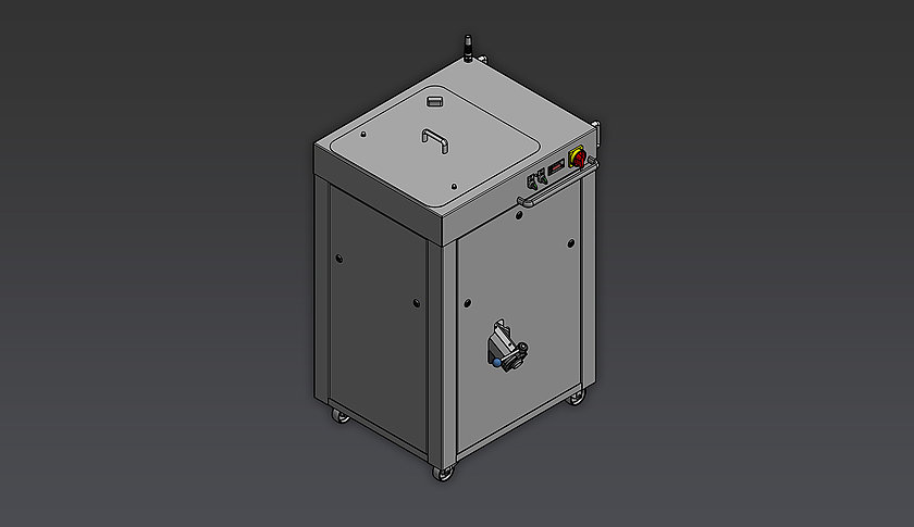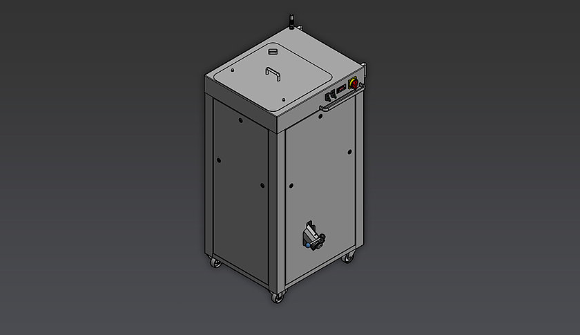 • Machine housing made of stainless steel, mobile on stable swivel castor